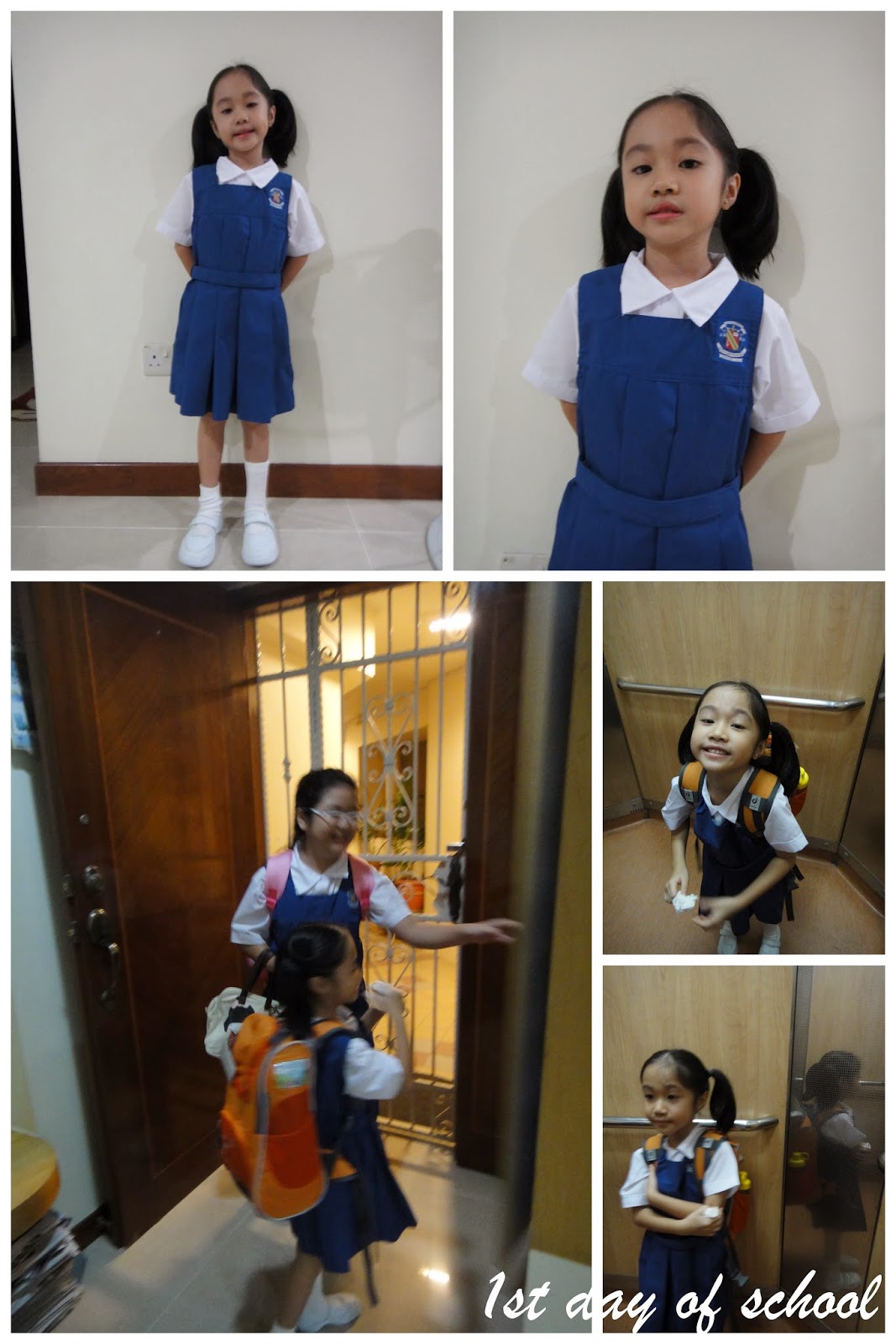 Walked the girls to the school gate, the priceless photo must be taken. And so she gamely gave me a peace sign. This would be the first and probably last photo of my girl at her primary school gate. Hmm.... perhaps I should take the final one on the last day of school (Primary 6) for both girls.